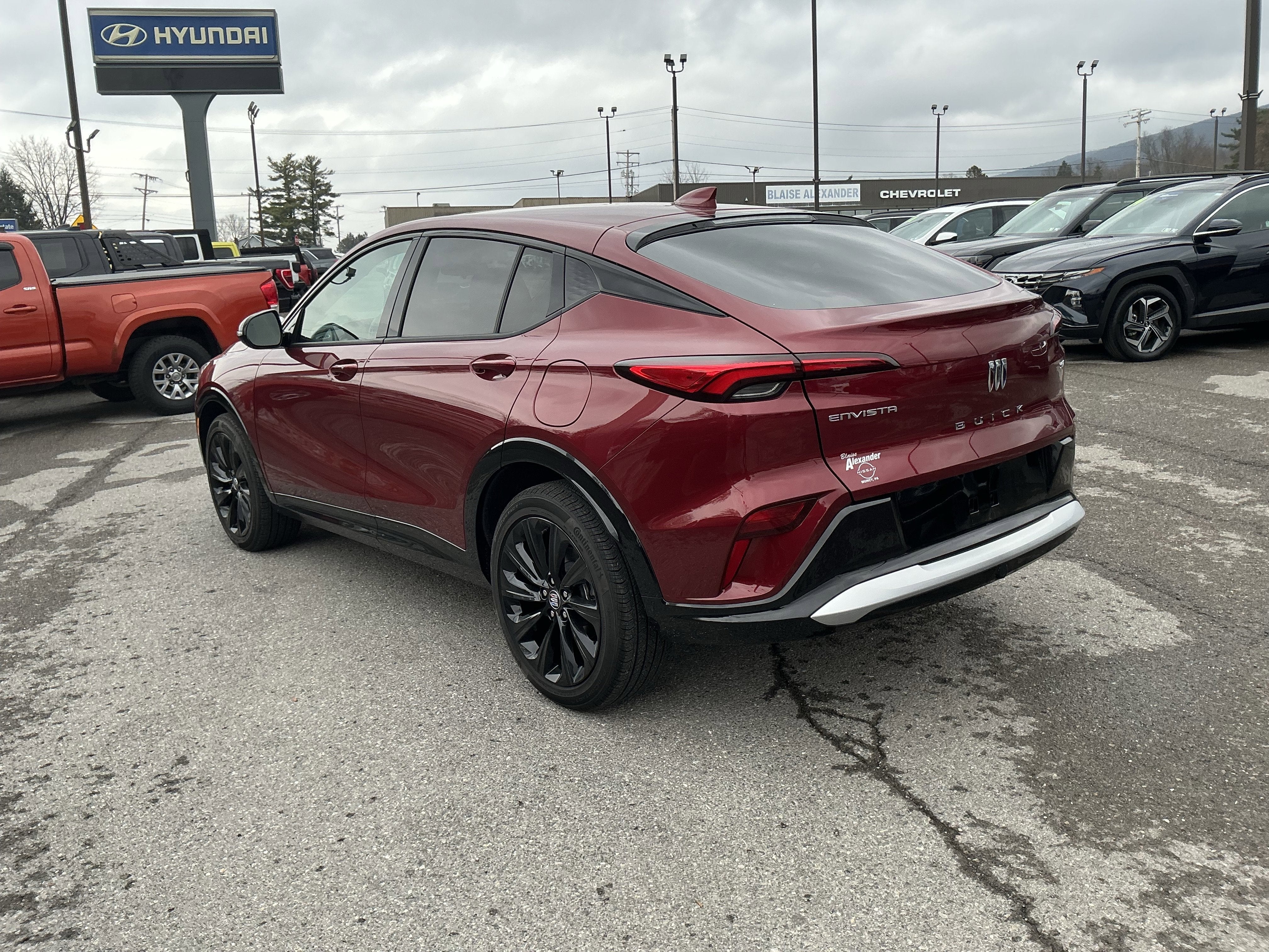 Our sophisticated Accident Free 2024 Buick Envista Sport Touring with the Convenience I and Experience Buick Packs is designed to defy expectations in Cinnabar Metallic! Powered by a TurboCharged 1.2 Liter 3 Cylinder providing 137hp to a 6 Speed Automatic transmission that's eager for action. Confident cruising awaits with the advanced Ride and Handling suspension, and this Front Wheel Drive SUV achieves nearly 32mpg on the highway. Our Envista's dynamic design cues include LED lighting, 19-inch black painted wheels, gloss-black mirror caps, gloss-black body moldings, a hidden exhaust outlet, a power sunroof, and heated power mirrors with built-in turn signals.Quiet and comforting, our Sport Touring cabin welcomes our Convenience I Pack to add heated leatherette seats, eight-way power for the driver, a heated-wrapped flat-bottom steering wheel, keyless access, and remote start to automatic climate control, a 12V power outlet, and ample rear cargo space for your next adventure. You can also move forward with modern technology like an 11-inch touchscreen, an 8-inch driver display, wireless Apple CarPlay/Android Auto, WiFi compatibility, Bluetooth®, and a six-speaker audio system with SiriusXM compatibility.Buick puts smart safety in the spotlight by supplying automatic braking, lane-keeping assistance, forward collision warning, pedestrian detection, an HD rearview camera, lane-departure warning, and more. A premium player, our Envista Sport Touring can move you with style and substance! Save this Page and Call for Availability. We Know You Will Enjoy Your Test Drive Towards Ownership!